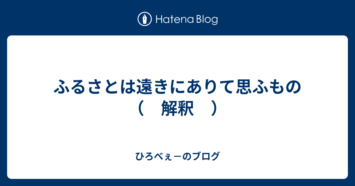 ふるさと は 遠き に あり て