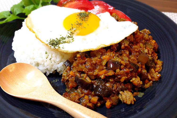 カレーにナスを入れて煮込むと こんな感じになりませんか ナスは ジャガイモとか人参を同じノリで一緒に煮込むと トロトロに溶けちゃう よく見るとナスがあるのは分かるんですけど いまいちシャキッとしてないです. なす 4本 玉ねぎ 1 2個 豚ひき肉 400g ニンニク 1片 生姜 1片 カレー粉 大さじ3 4 酒 大さじ4 ケチャップ 大さじ4 醤油 大さじ3 ソース 大さじ4 甘酒 大さじ1 サラダ油 大さじ1 ごはん 米 1人分 炭酸水 適量.