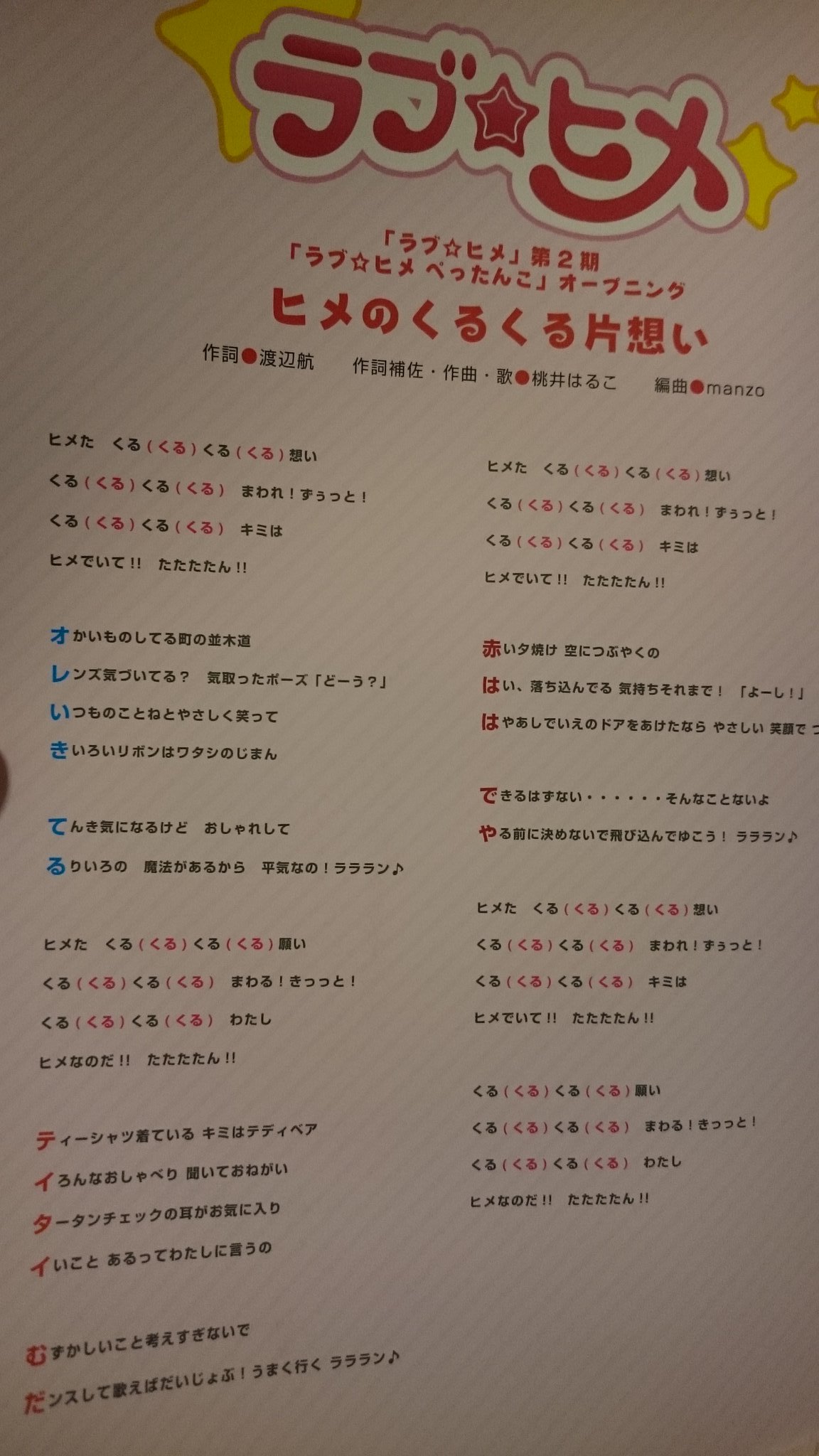 ヒメ の くるくる 片思い. ヒメのくるくる片思い 前作の 恋のヒメヒメぺったんこ より引き続き 歌唱 作曲 補作詞をさせていただいております 編曲は劇中音楽を手掛けられているmanzoさん 作詞はもちろん原作の渡辺航先生です. 劇中歌 ヒメのくるくる片想い cd 描き下ろしcdジャケット風シート付き 歌 姫野湖鳥 cv 田村ゆかり 作詞 渡辺航 作曲 編曲 渡部チェル. 昨日見た坂道くんのヒメくる ヒメのくるくる片思い が頭の中をループ ひーめたーの後がうろ覚えだけ ヒメでいて 秘めていて. 舞台 弱虫ペダル 新インターハイ篇 スタートライン 新エンディング曲 ヒメのくるくる片思い 総北トリオによる.